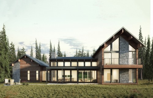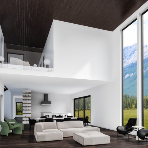 This home is characterized by its three different volumes and large windows which allows for high ceiling in the common rooms and lots of natural light.
