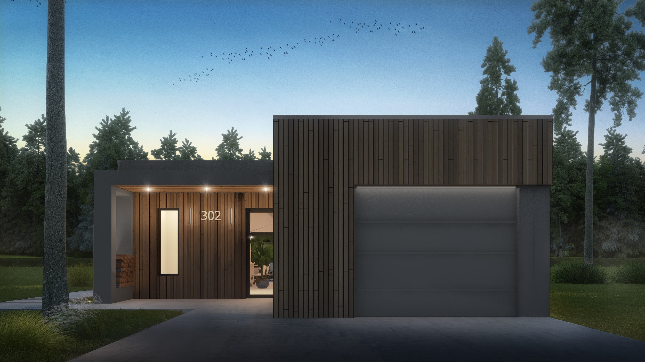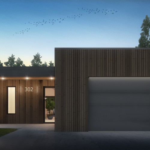 Exterior finishes; stucco, wood, aluminum (accents)