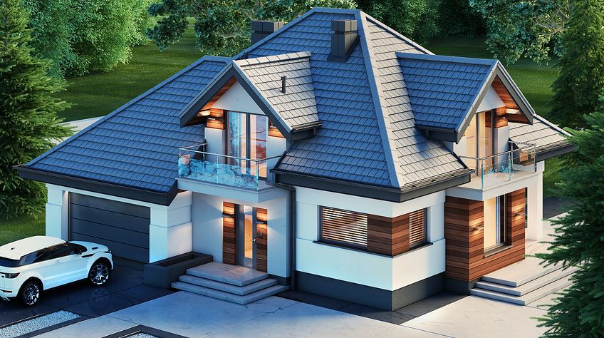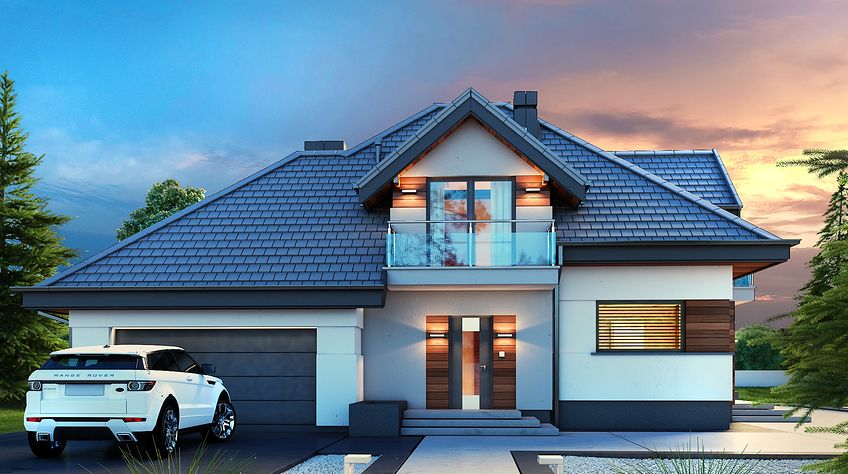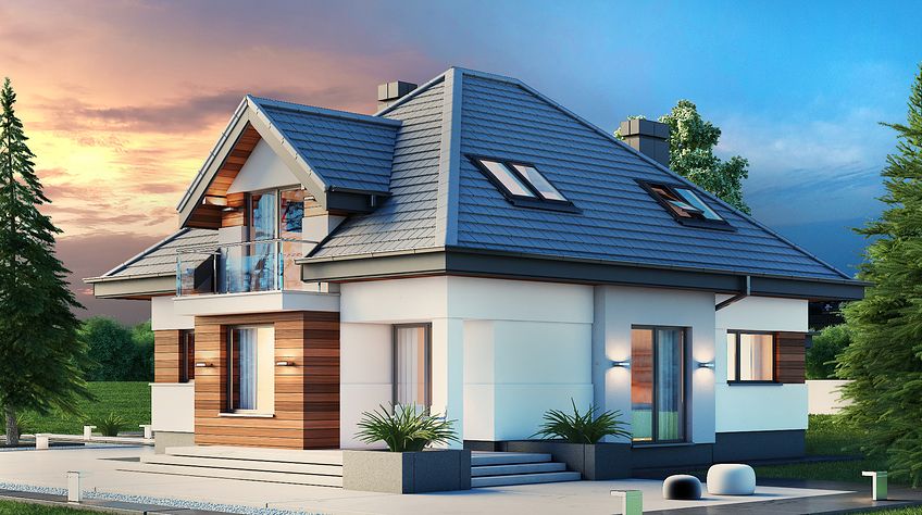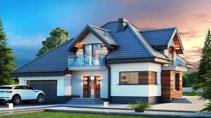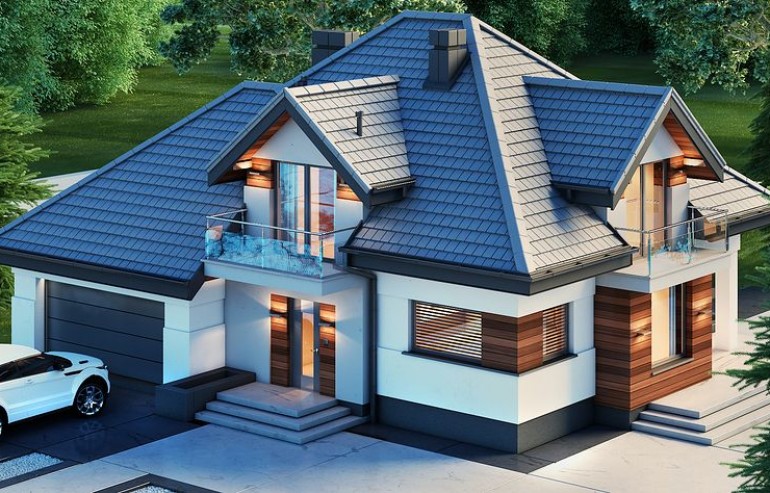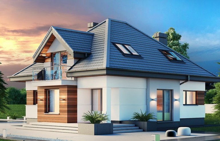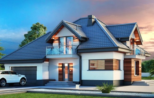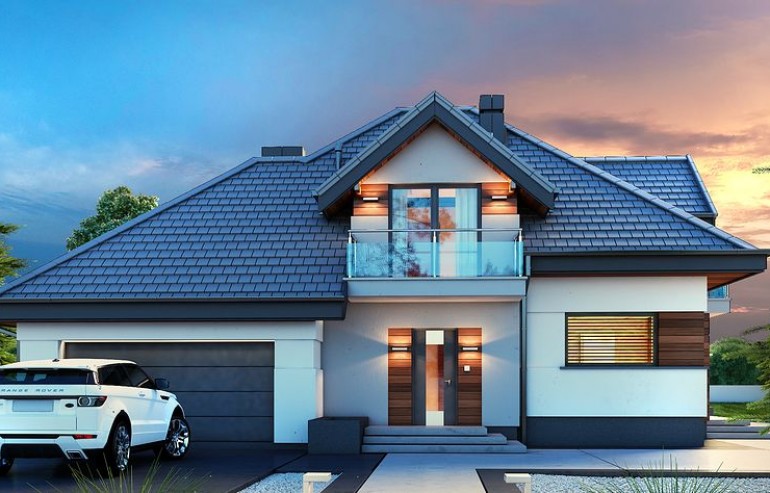 House design Alicja N 2G is an interesting proposition for people with a plot of medium width. The body of the building has an uncomplicated form, which greatly facilitates the construction process. It is intended for investors who have a plot of land that allows for the implementation of the project in a detached building. The author of the project envisaged a two-car garage put forward. It is also an excellent proposition for people looking for a house with a tent roof that perfectly protects the building against unfavorable weather. The Alicja N 2G project is a one-story house with an attic, thanks to which we can develop a larger area. An unquestionable advantage of the Alicja N 2G project is the interestingly planned daytime area on the ground floor. The entrance to the kitchen has been opened, but it is optically separated from the living room, which gives unlimited arrangement possibilities - the style of the kitchen does not have to match the style of the living room. The bay window included in the design not only looks great from the outside, but is also a great place to create a dining room. A large living room gives the interior space, allows children to play freely and is perfect for organizing parties. There is also a fireplace in the living room, which ensures a pleasant atmosphere, especially during autumn and winter evenings. The design includes three fully equipped bathrooms - one of them is located in the private matrimonial part next to the dressing room. The house has three comfortable bedrooms, which makes it an excellent choice for a family of 4-6. The space of the room on the ground floor can be used as a guest bedroom or office. The utility room provided for in the project will certainly help us to keep order. Family gatherings on sunny days will be made more pleasant by the terrace next to the house. The brick technology recommended by the architect ensures durability and solidity of the structure. The visual side of the Alicja N 2G project is a perfect combination of traditional style and modern solutions.