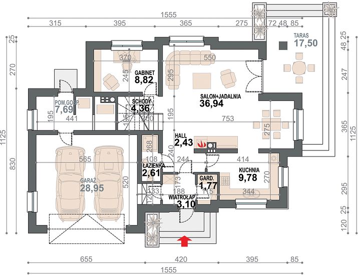 4. Pokój dzienny + jadalnia36,94 m2
