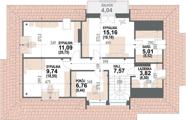 3. Pokój9,74 m2(18,55 m2)
