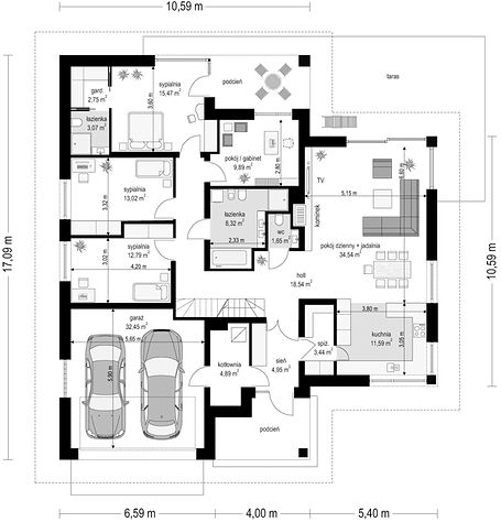 15. Garaż dwustanowiskowy32,45 m2