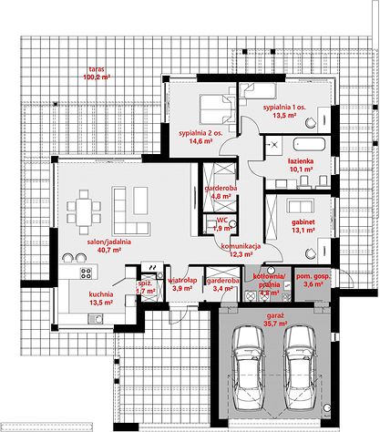 15. Garaż dwustanowiskowy35,70 m2