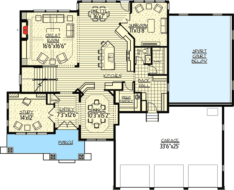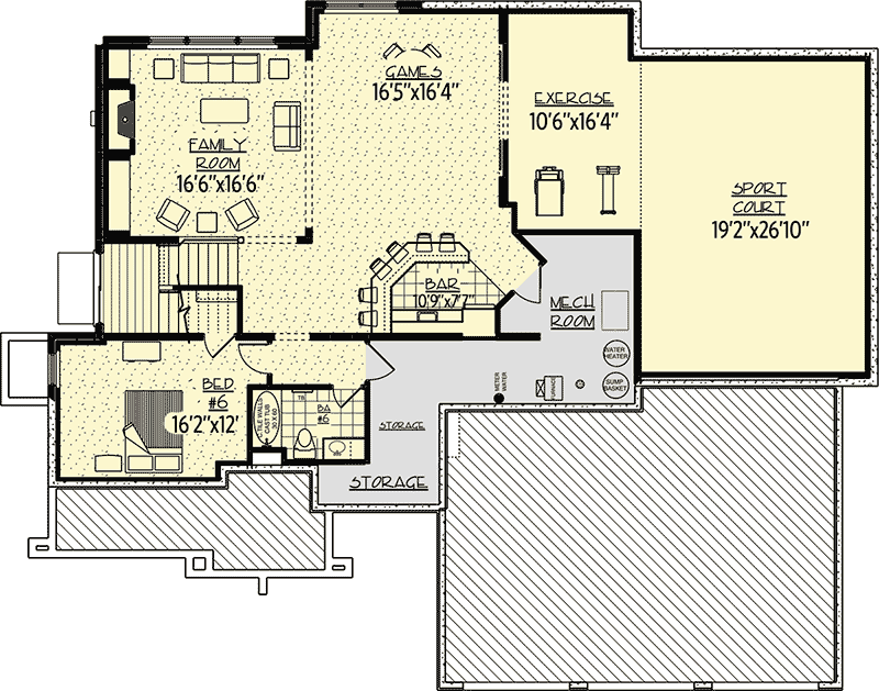 Sports Court:570 sq. ft.