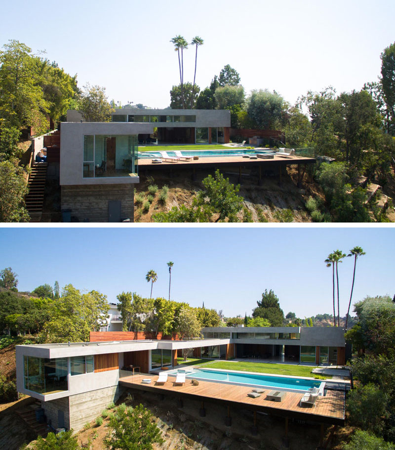 This New Concrete And Wood Home Was Built On A Steep Slope In Beverly Hills, California