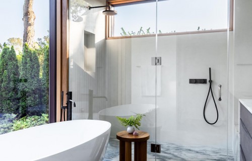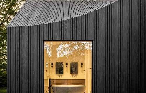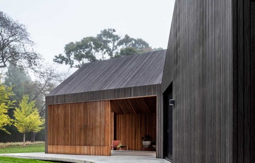 Deep Gray Slatted Accoya Wood Siding Covers The Exterior Of This Modern House