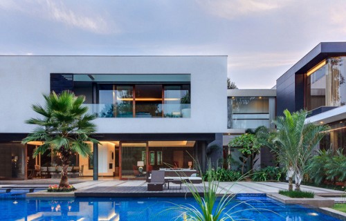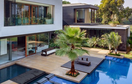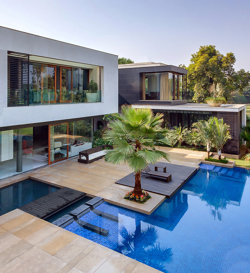 This Home Was Designed To Wrap Around The Swimming Pool