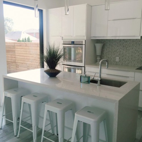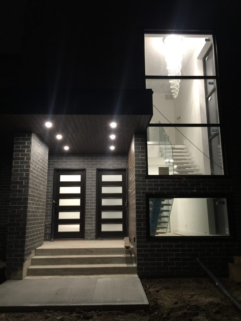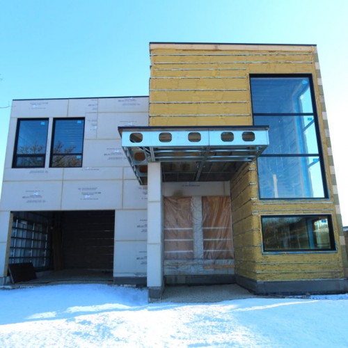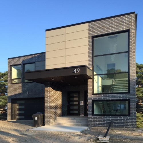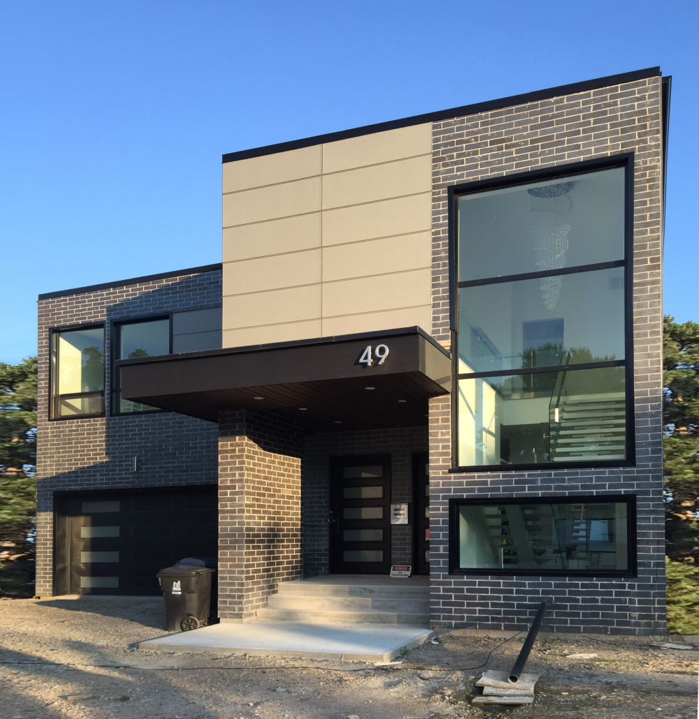 Located in Etobicoke, this two storey home has been designed with our Infill inspiration as a starting point. The home also features two bedrooms, a shared bathroom, and a laundry/utility room, with a mudroom shared between the garage entrance and the main entrance. There is a social space with higher ceilings on the upper floor and a single-car garage with a mudroom. The living room at the front of the building features a fireplace and is cantilevered over the entrance.