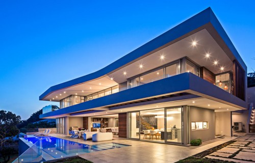 The ground floor of this house is almost completely surrounded by windows