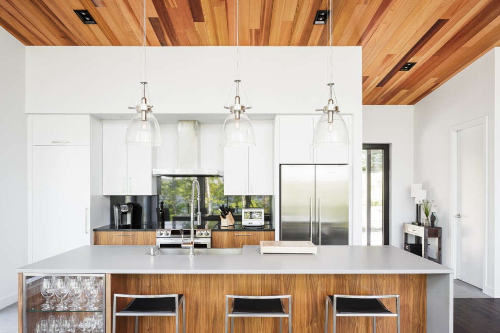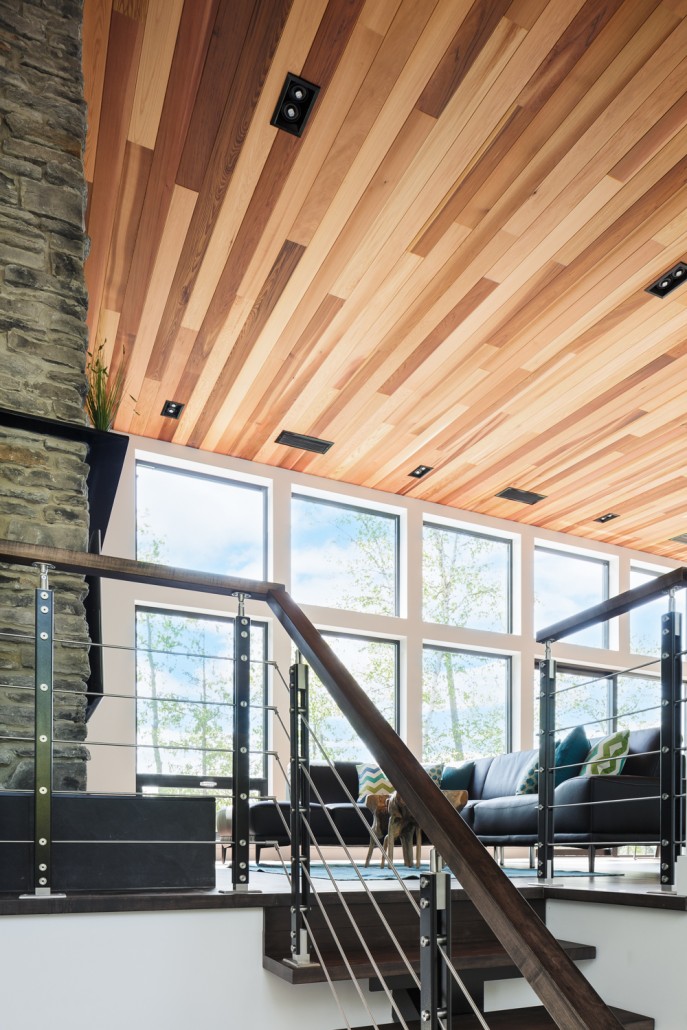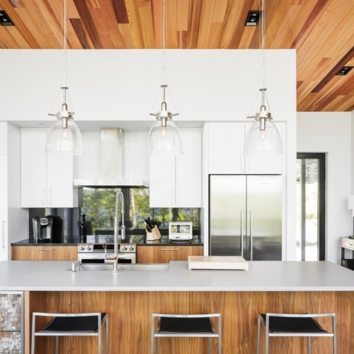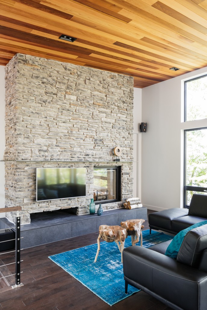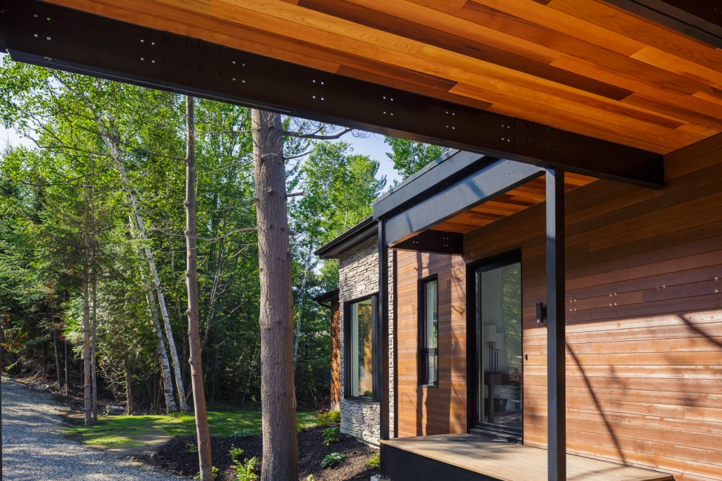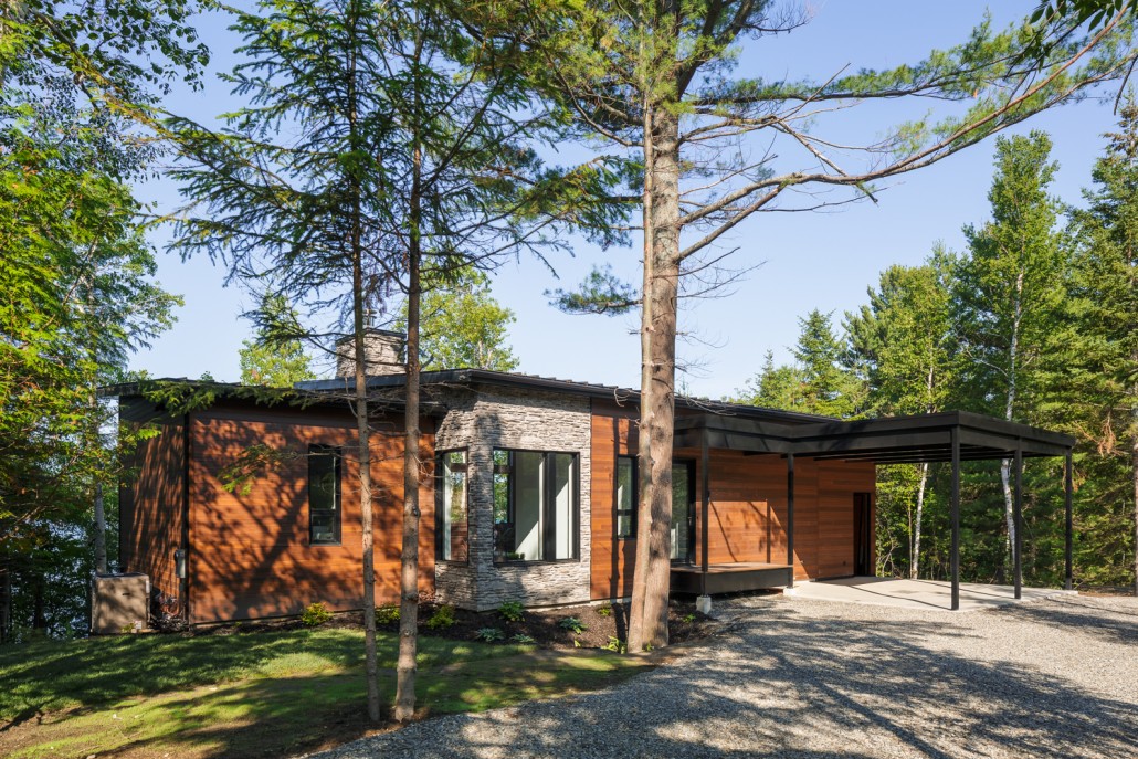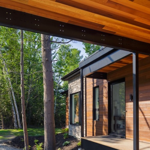 This beautiful secondary home overlooking a majestic lake is defined by its large windows and large open spaces. The optimized room configuration creates a warm and timeless design. The integrated outdoor terrace opens the interior living space onto nature’s canvas.